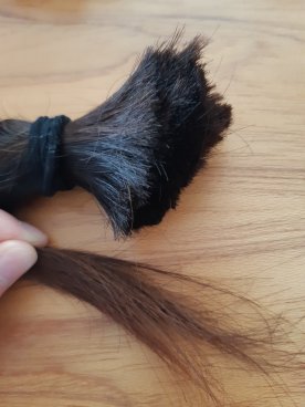 I had been thinking about donating my hair for a while and wanted to grow it as long as I could and also wanted to make it as healthy as possible. My hair usually gets damaged by the sun, and many people have told me they thought I dyed my hair, but it is just the sun’s rays that turn it coppery. I tried to capture the difference in colour with the picture below: essentially as my hair grows and is exposed to the sun more it gets lighter and more coppery.