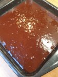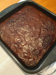 When we cut into them, the outer parts started to crumble, it was clearly quite dry in places. Much drier than I was expecting. According to a Nigella forum, brownies that crumble when cut can be due to over beating the eggs. This may have been the issue, I do recall beating the eggs with a fork for quite a while. The forum states that the eggs should only be whisked gently and briefly. The air trapped when beating can cause brownies to rise as they bake, with a gap between the top crust and the base, causing the brownies to become more cake-like – hence the crumbling.