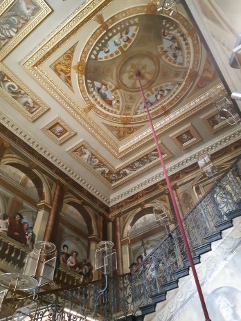 After Queen Anne’s death, the throne went to Georg Ludwig Elector of Hanover, who became George I. The King’s Staircase features people from George I’s court and was painted by architect and designer William Kent. The King’s staircase reminded me of the magnificent staircase in Hampton Court Palace.