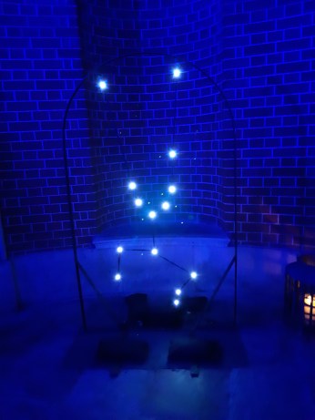 Next up, blink and you’ll miss it. A short corridor of six constellations lined the path leading us outside, all constellations had starry lights too. Here was Taurus (the bull) constellation, the best picture I could get showing the starry lights forming the constellation.